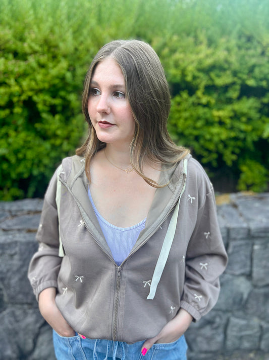 Regular price $59.99 USDRegular priceUnit price perSale price $59.99 USDBow Embroidered Zip Up Hoodie Jacket